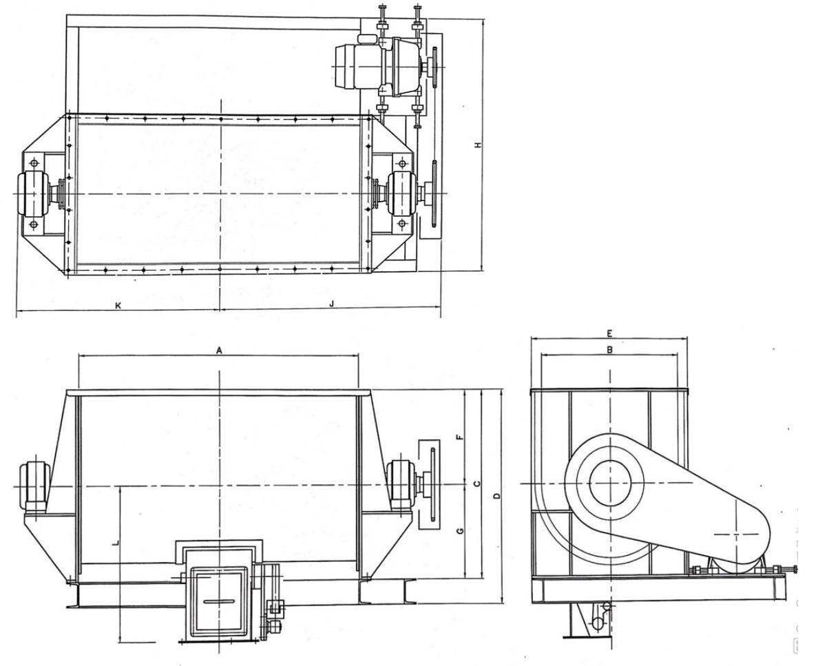 - Structure: The unit features a U-shaped trough (trough-shaped shell) surrounding the agitator blades.