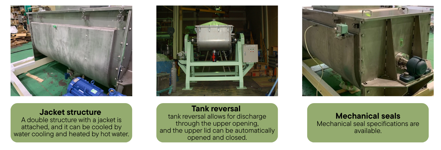 - The case has a double-jacket structure, and powder mixing can be done while cooling or heating. (*Special Specifications)